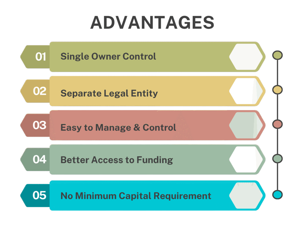 This structure is simple to manage, requires only one director and one shareholder, and offers more credibility than a proprietorship. It also ensures perpetual existence, meaning the company continues even if the owner is unable to run it, as a nominee takes over.